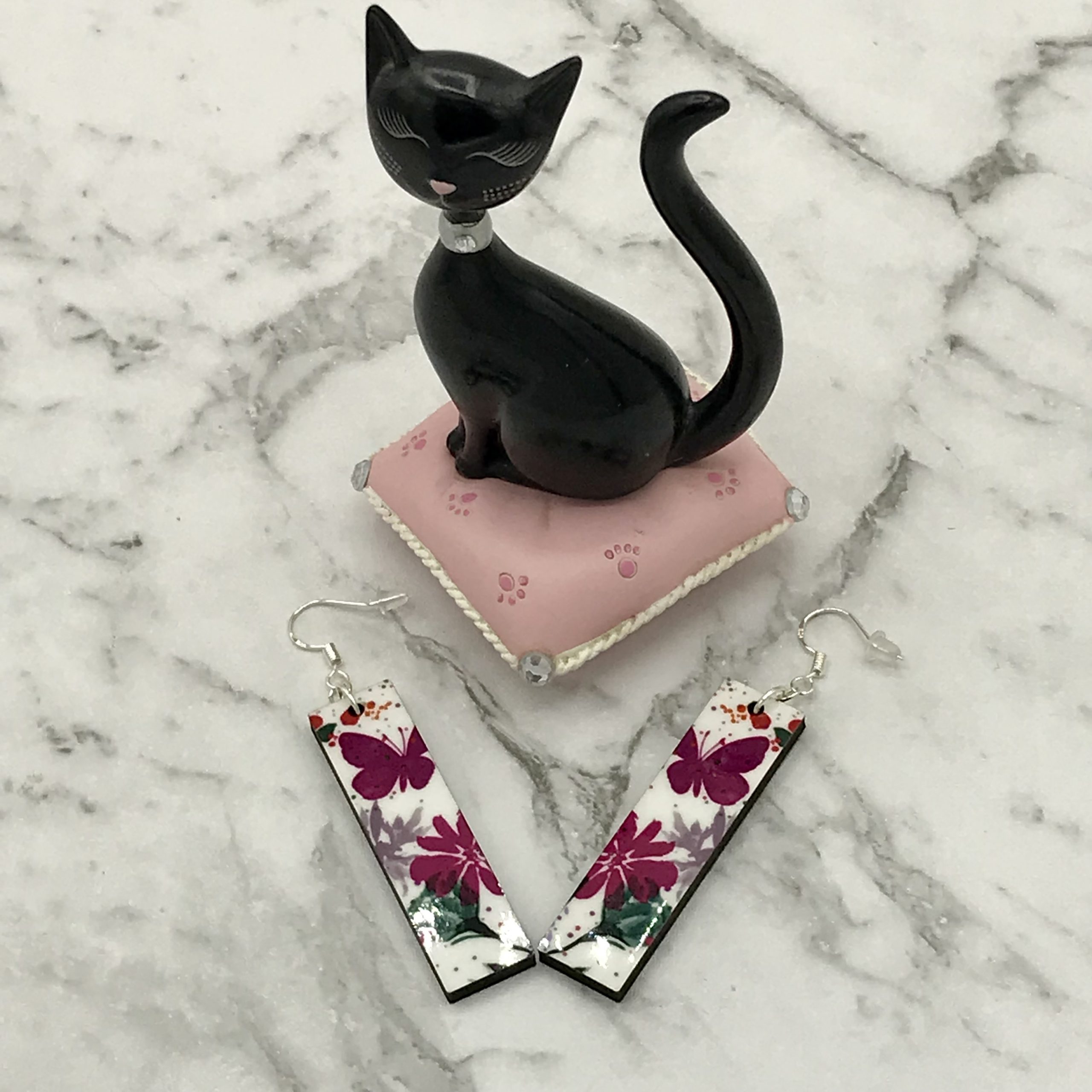 Hand printed on mdf, from my original artwork Butterfly Garden’ these unique earrings are light and easy to wear with sterling silver hooks. The image is heat pressed which makes the image fade, peel and crack proof. The artwork is printed on both sides.